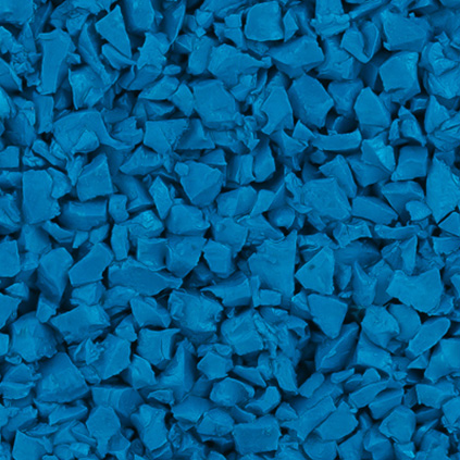 EPDM-крошка синего цвета — яркий, современный материал покрытия, подходящий для устройства спортивных и детских игровых площадок и залов, общественных зон, промышленных пространств любой площади, внутри помещений и на улице. Также EPDM-крошка может использоваться при создании игровых объектов и малых архитектурных форм.