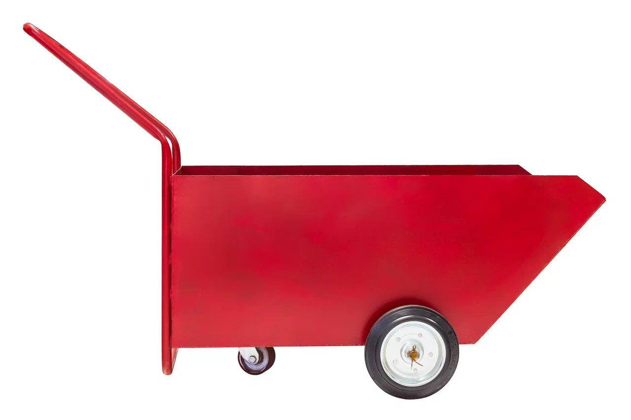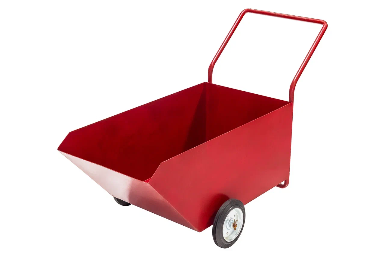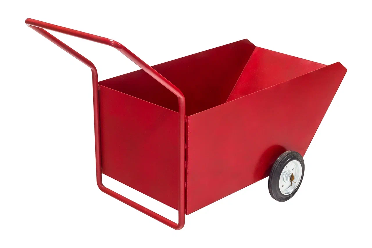 Тележка для резиновой смеси ТРС-1 представляет собой стальную сварную конструкцию на двух небольших колёсах. Бункер имеет ковшеобразную форму, благодаря чему рабочие смогут без особых усилий распределять по основанию даже большие объёмы смеси. Все металлические элементы тележки покрыты специальным составом, который защищает металл от коррозии.