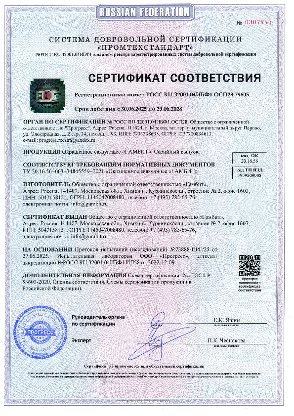 Оставьте заявку на сайте. Специалисты компании «Гамбит» перезвонят, дадут подробную консультацию по техническим характеристикам окрашенного связующего, помогут подобрать лучший материал для вашего объекта.