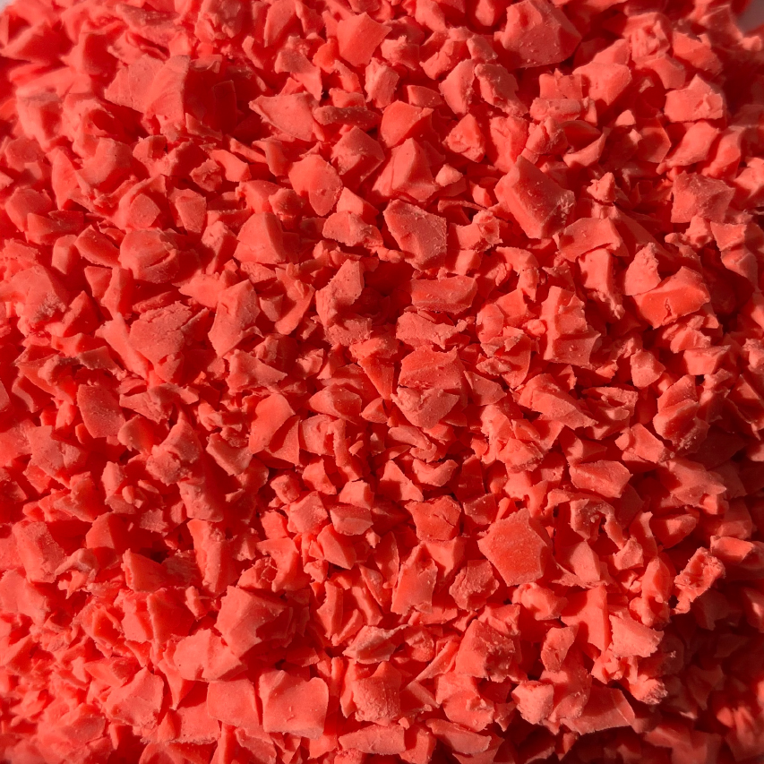 TPV крошка люминесцентного красного цвета — более совершенный аналог EPDM от британских разработчиков. Устойчивость к физическим нагрузкам и ультрафиолету позволяют покрытию долгие годы оставаться в состоянии «как новое».